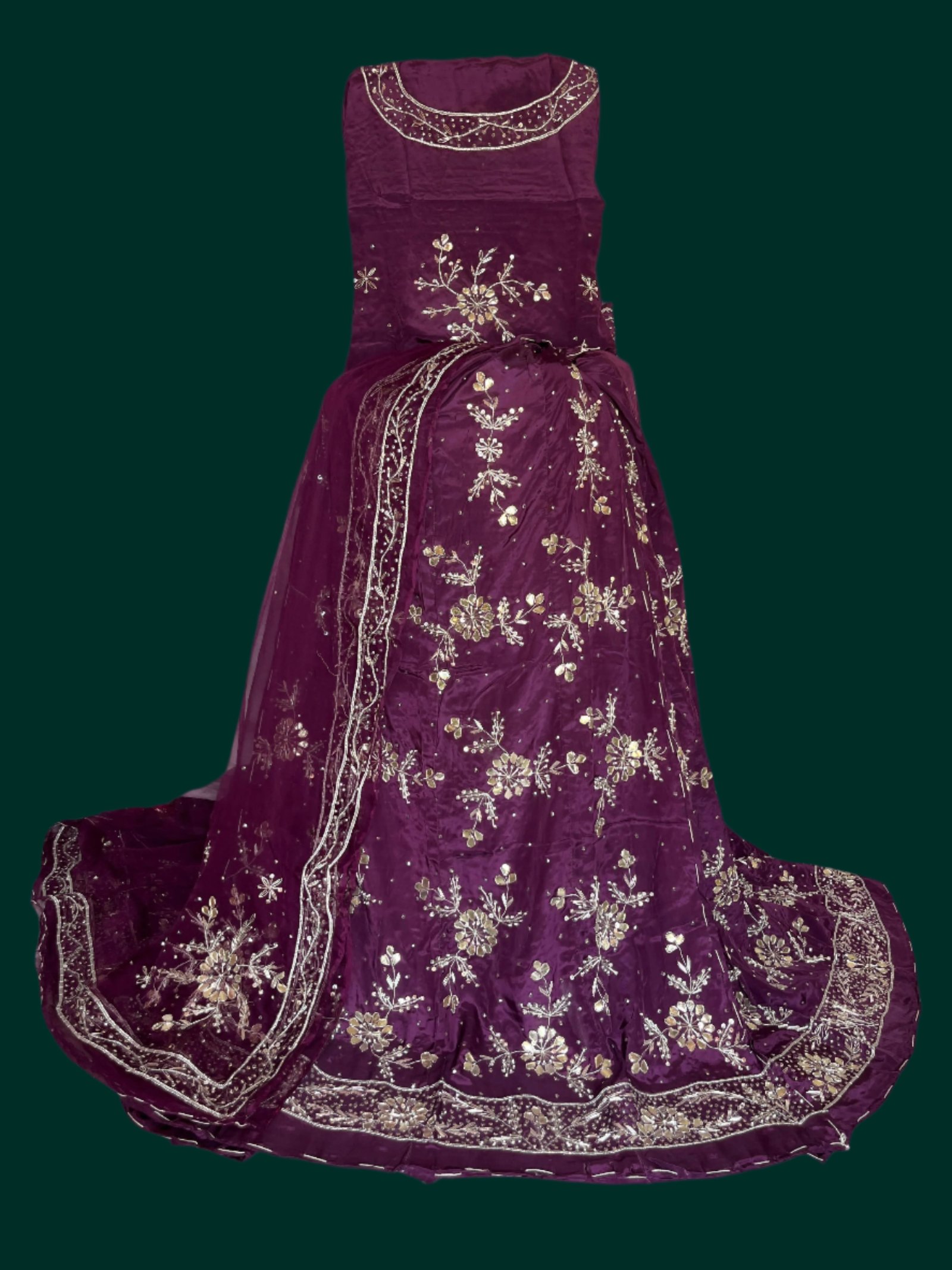Royal Purple Rajputi Poshak In Natural Crepe With Thakur Ji Pure Odhni – Gota Patti, Zardozi, Thread & Stone Handwork